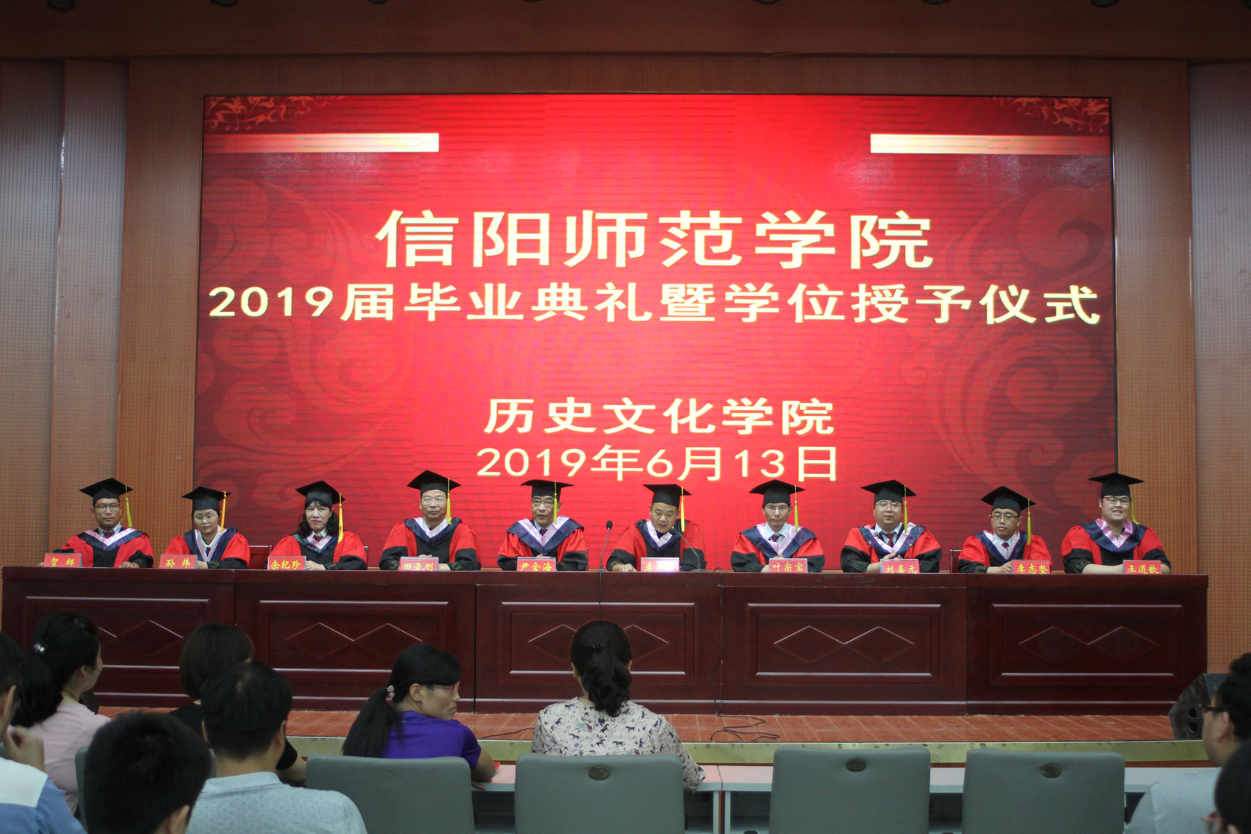 毕业典礼在庄严的国歌中拉开序幕。叶宗宝宣读了《信阳师范学院关于授予2019届毕业生硕士学位的决定》《信阳师范学院关于授予2019届毕业生学士学位的决定》。2015级文化产业管理班完瑞红同学代表2019届毕业生发言,表达了对师恩的难忘,同窗的不舍,对在校四年求员工涯的留恋,以及对未来生活的无限憧憬。2016级文化遗产班王喜亭作为在校生代表发言,她感谢学长学姐在学习、工作以及生活中给予的指导和帮助,并为学长学姐送上最真挚的祝福。